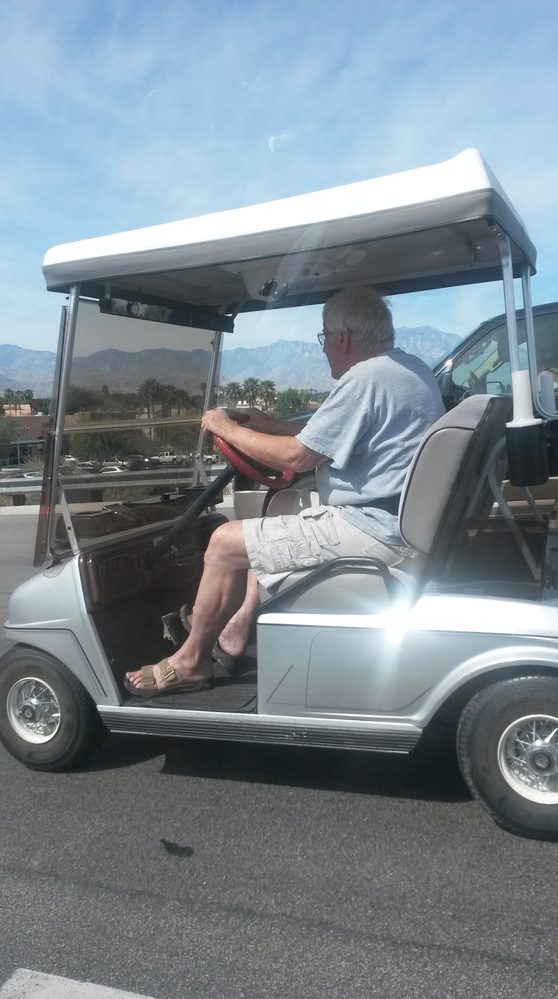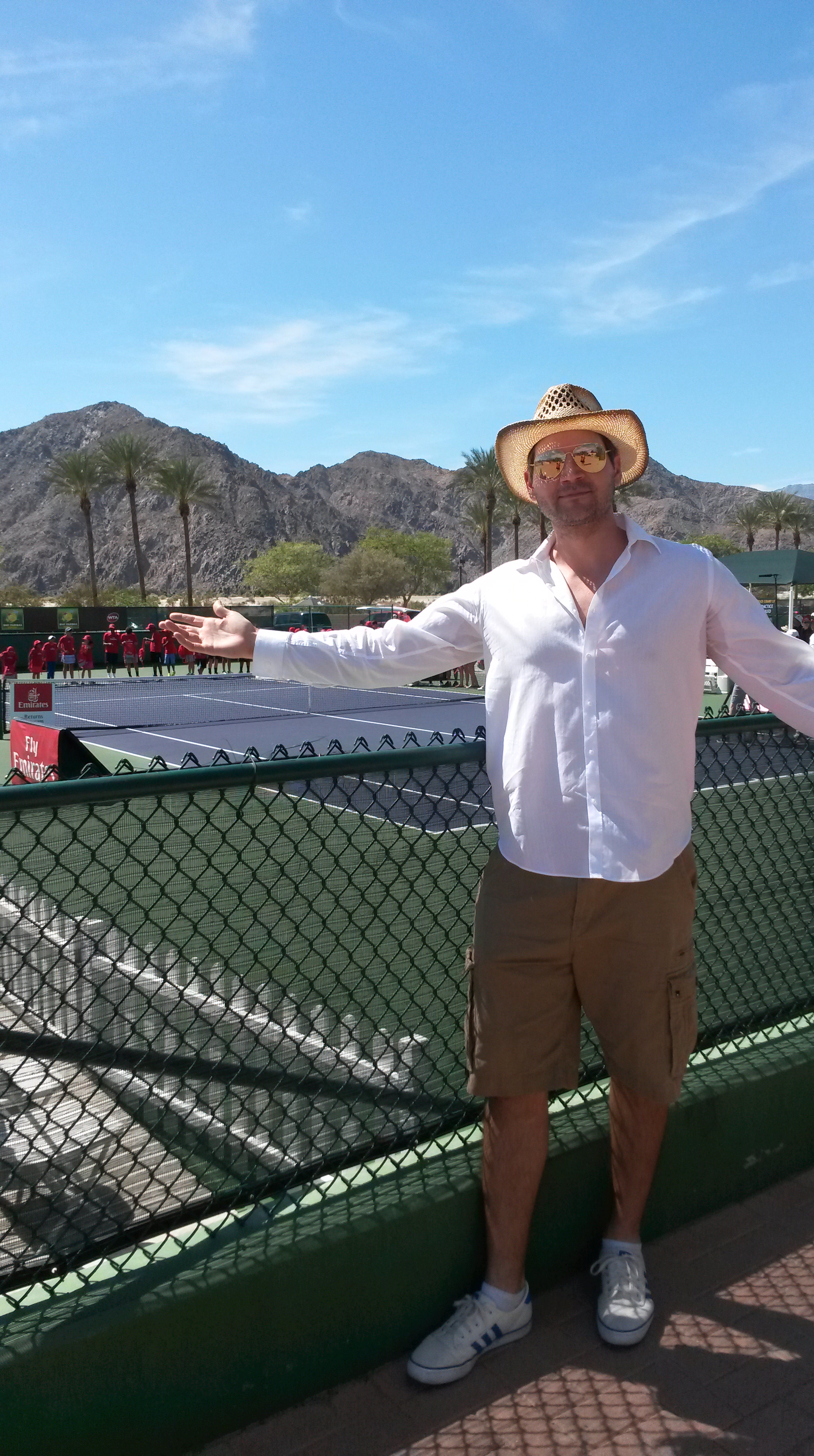 The car’s outside temperature had shot up 15 degrees. (In my head, the coffee was saying: “Holy shit this is hot!”) I knew we were getting close, though. Tucked behind rows and rows and rows of trees, we passed by Palm Springs—Indian Wells’ more-known neighbor.